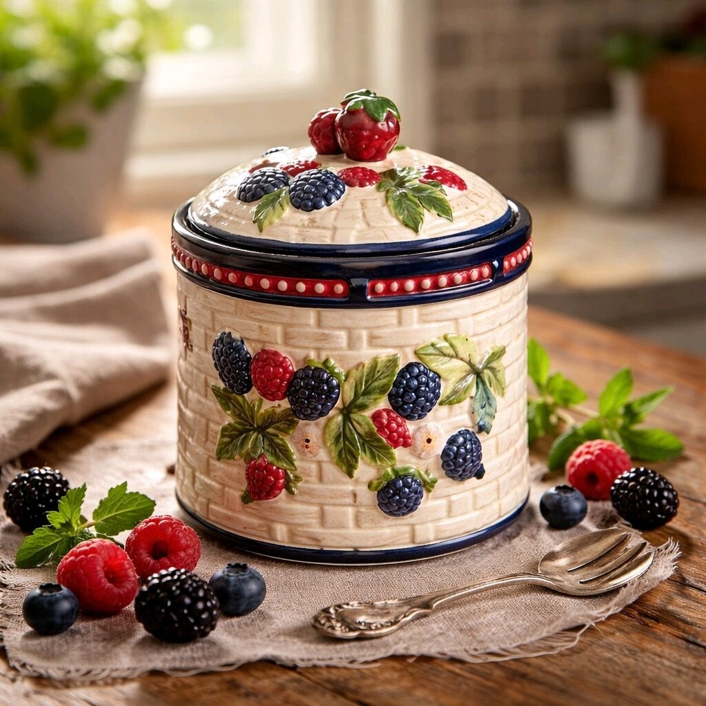 Pot en céramique peint à la main en relief 11,5x10,5cm