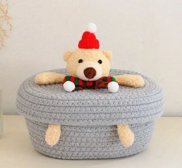 Panier tissé en forme d'ours avec couvercle tissé 11x23x16cm