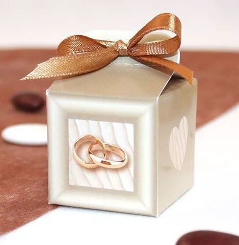 Petite boîte à dragées avec alliances dessinées 4x4x5,5cm